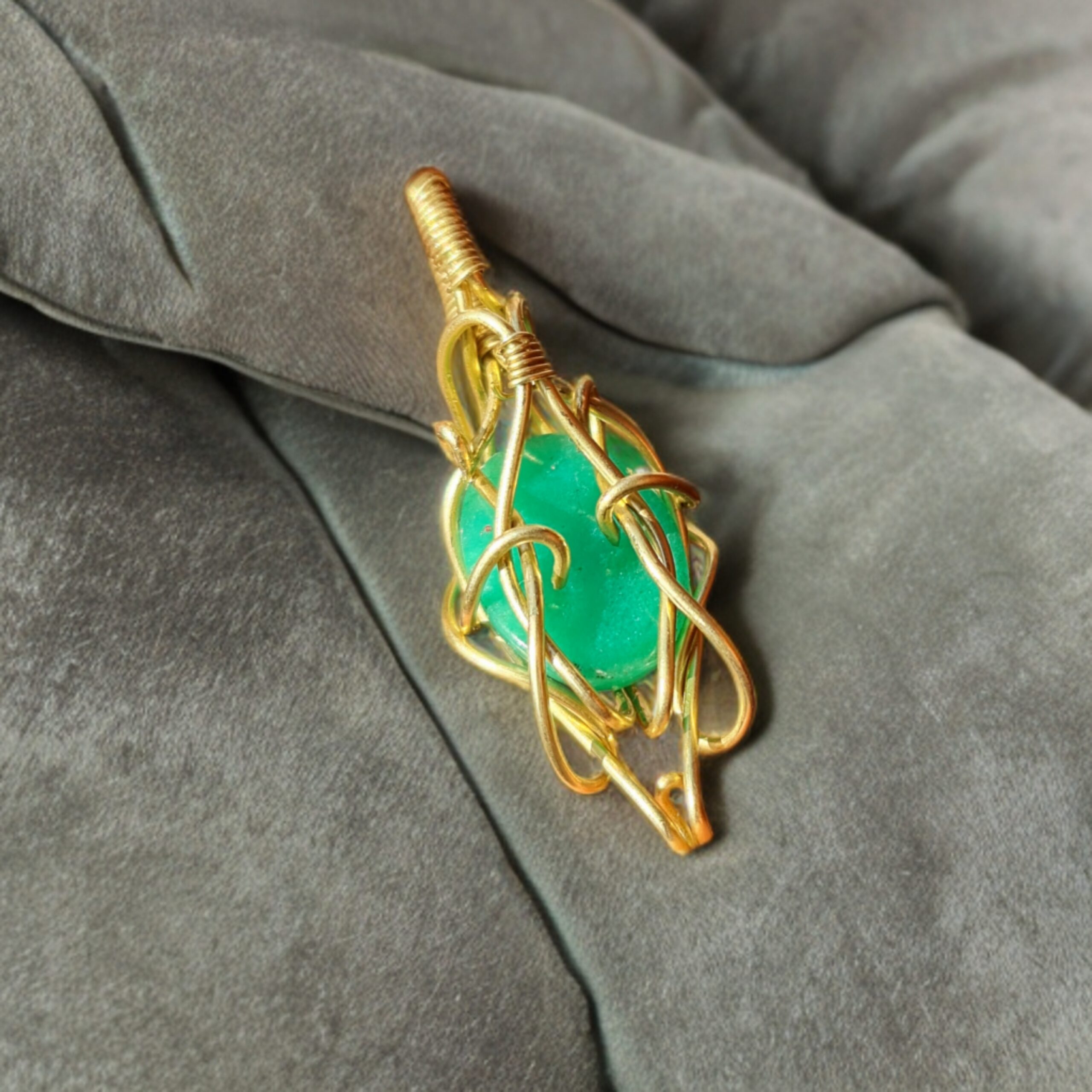 ترکیب رنگ سبز عمیق یشم در کنار گرمای فلز برنز، جلوه ای اصیل و ماندگار به این اثر بخشیده است.