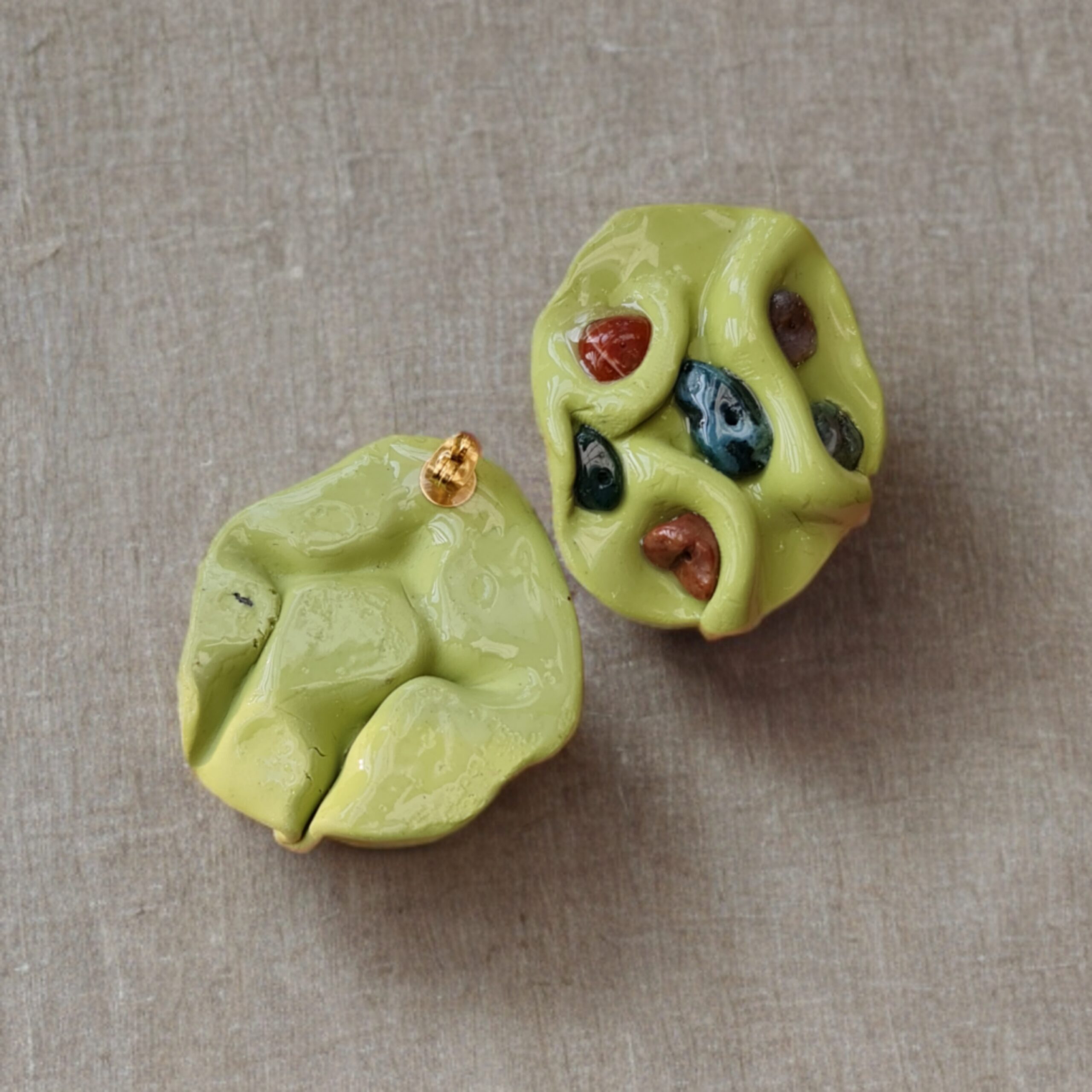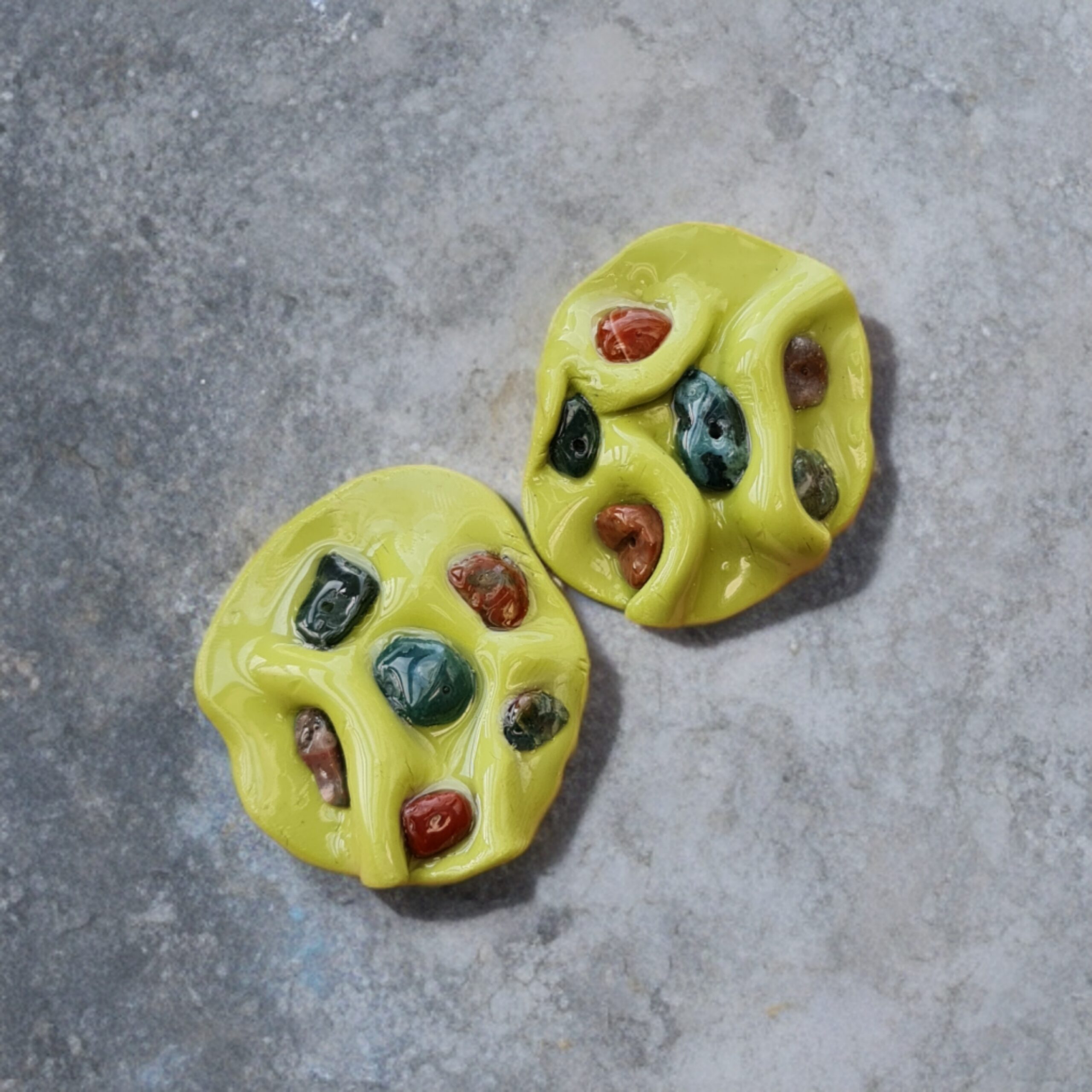 این گوشواره توسط برند ملک جاوید با سنگ های کاملا طبیعی عقیق به صورت دست ساز ساخته شده است.